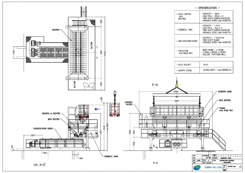 ● 믹서 및 반응기 : 굴착 작업 중 발생하는 폐수와 그라우트 혼합물을 고화시키기 위한 믹서 및 반응기가